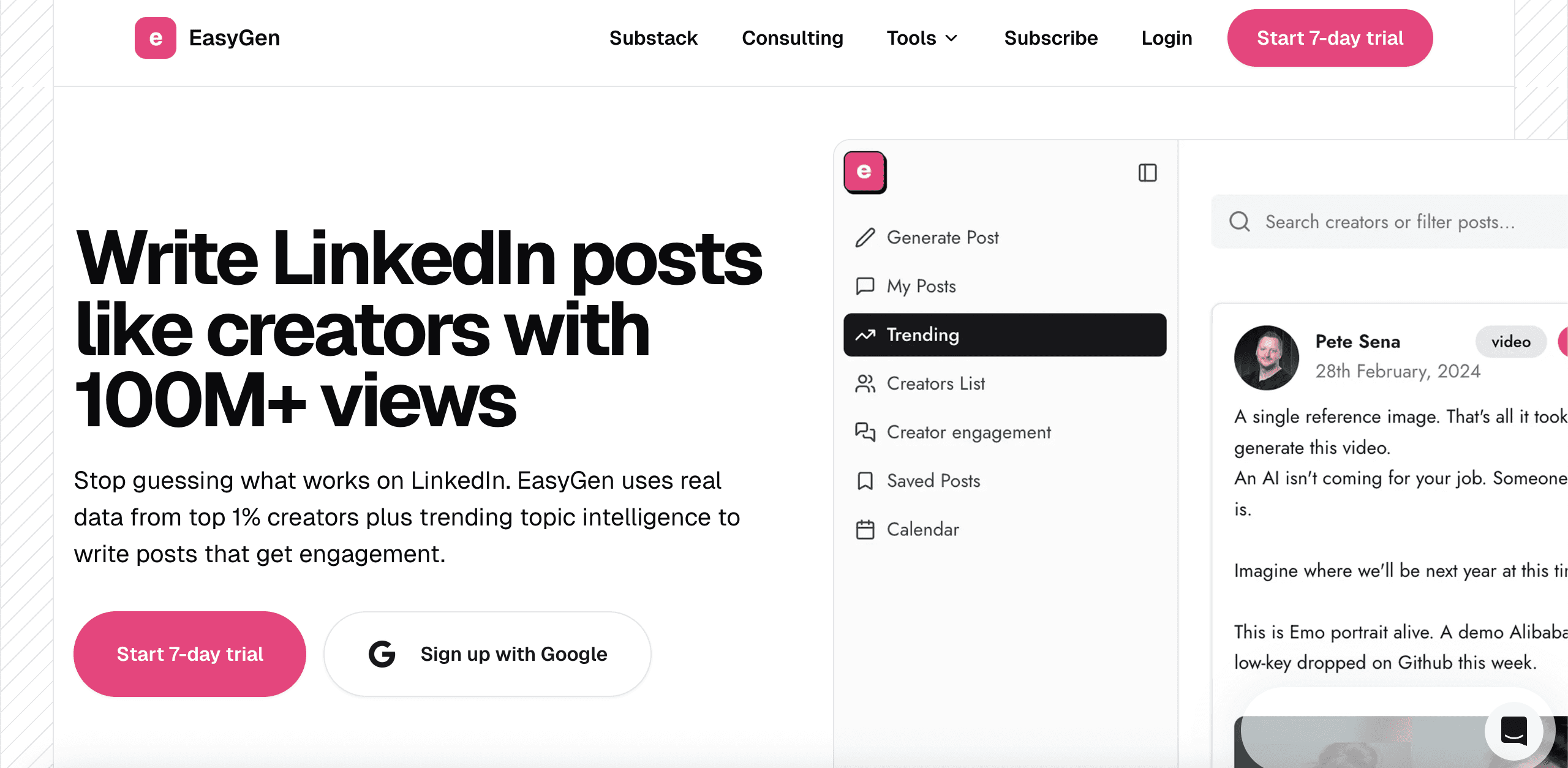 Free Trial: Generate your first three LinkedIn posts for free.