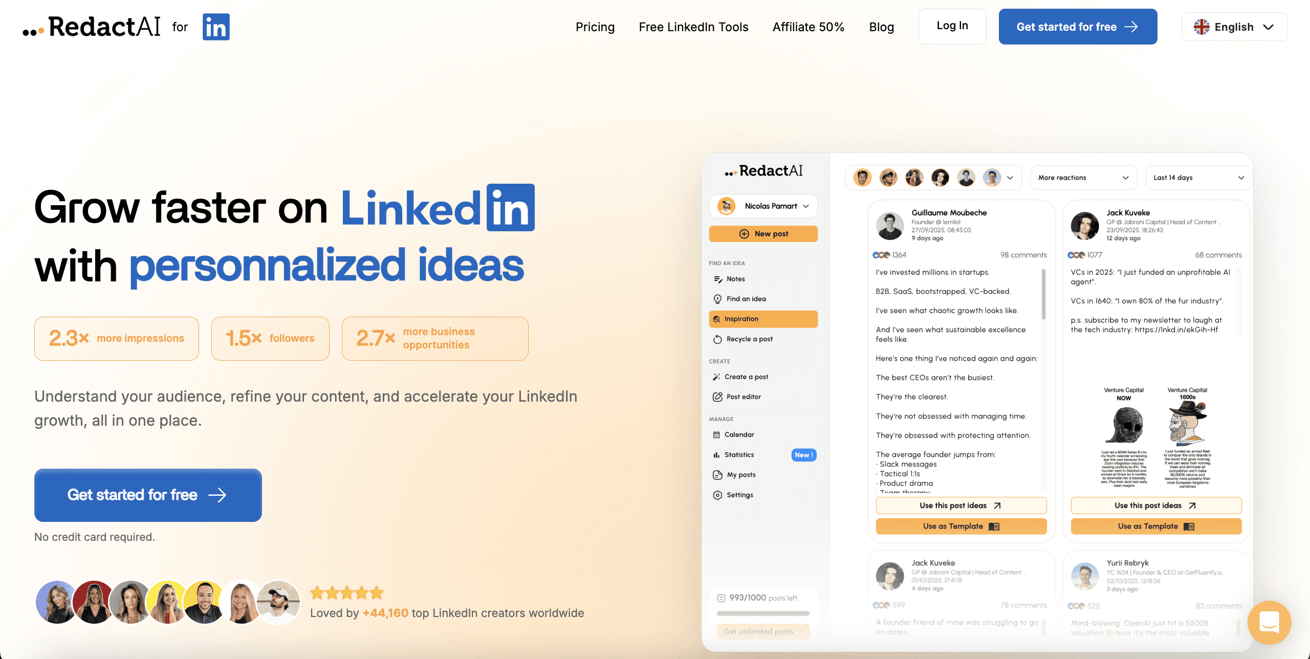 RedactAI is another tool made for LinkedIn content creators. It makes content creation easier by helping you generate posts and brainstorm ideas.