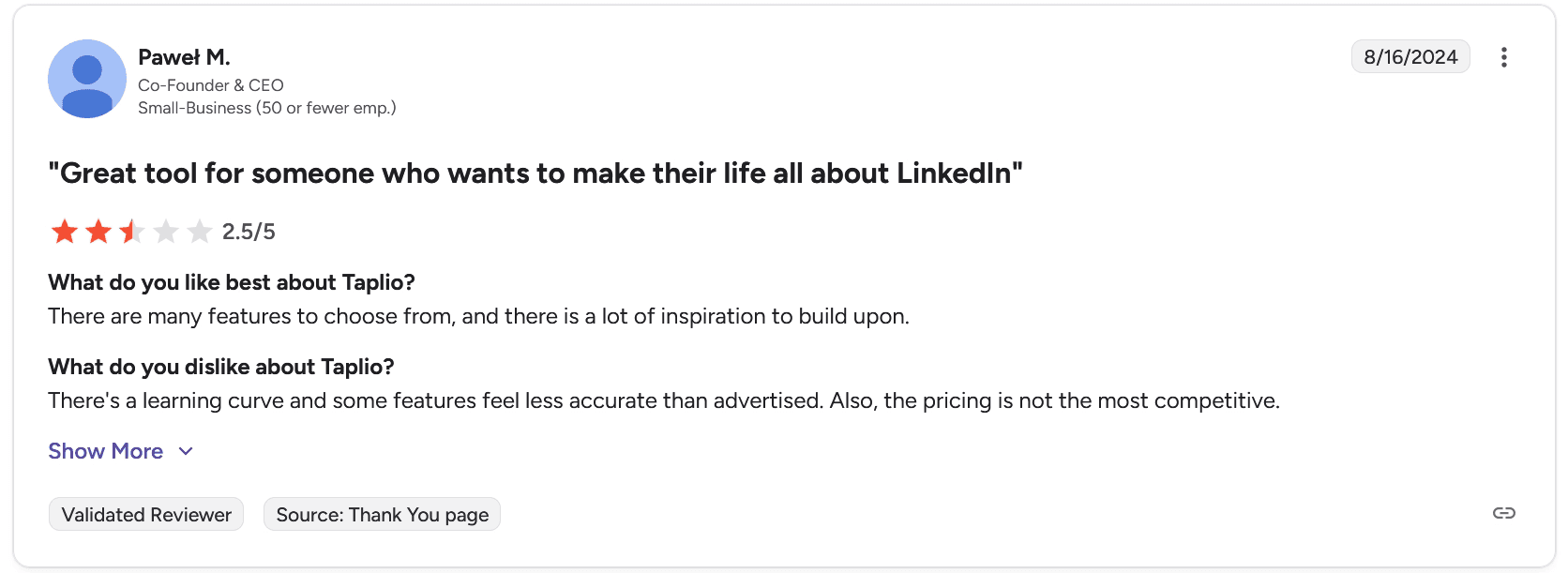 Users appreciate how much easier Taplio makes consistent LinkedIn posting. The AI writing tools, scheduling, and built-in analytics are frequently cited as genuine time-savers.