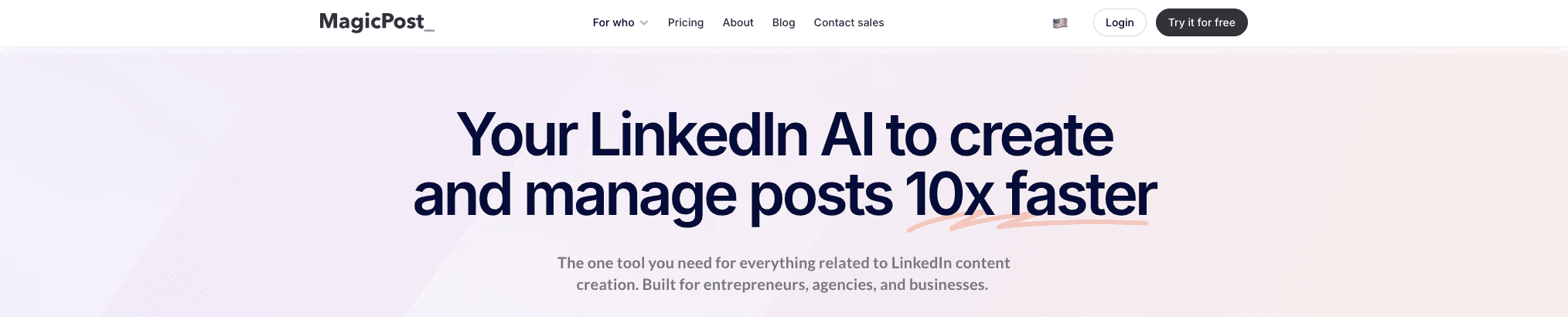 If your main priority is fast content on LinkedIn, without the added complexity of analytics dashboards, other social media management, CRM systems, or heavy automation workflows, MagicPost might be the better fit. It helps you create posts in seconds using: