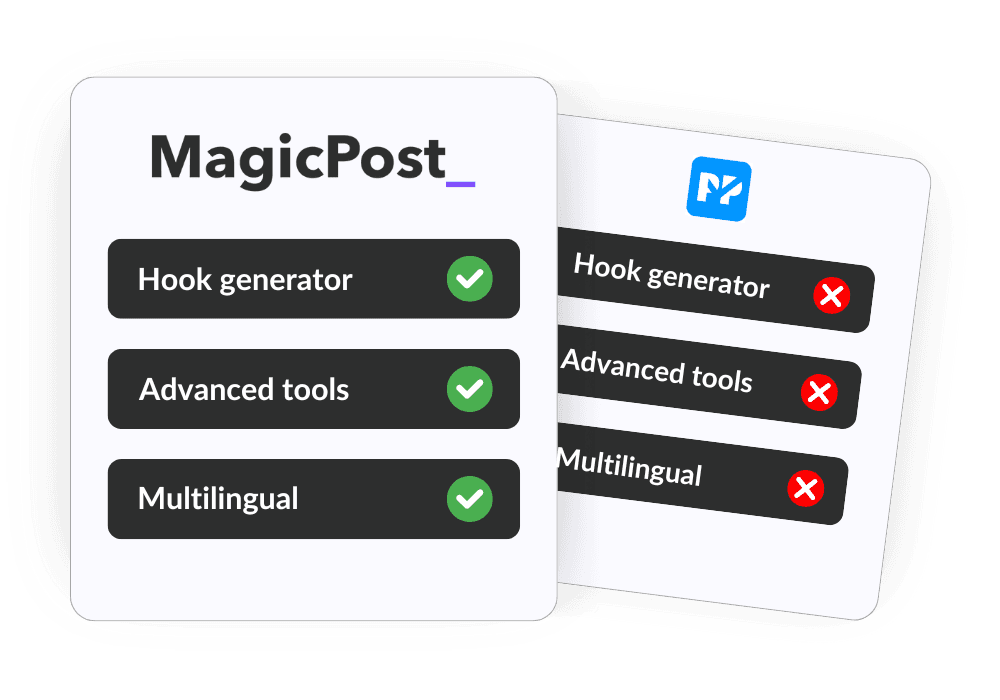 If you're looking for an AI-powered tool with the highest level of quality on the market, MagicPost is the way to go. What's more, the tool offers more features, such as an idea, hook and post generator (with an idea, URL or template).