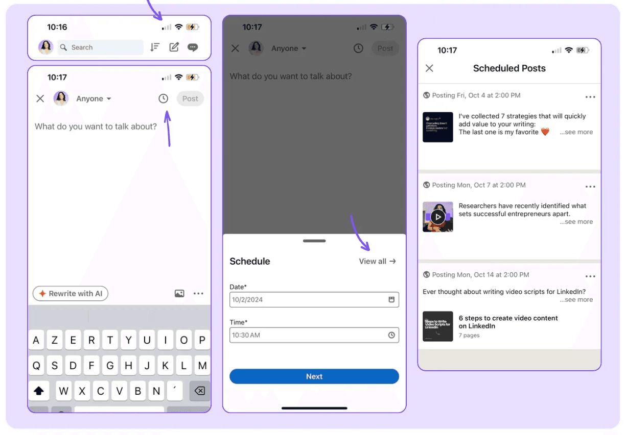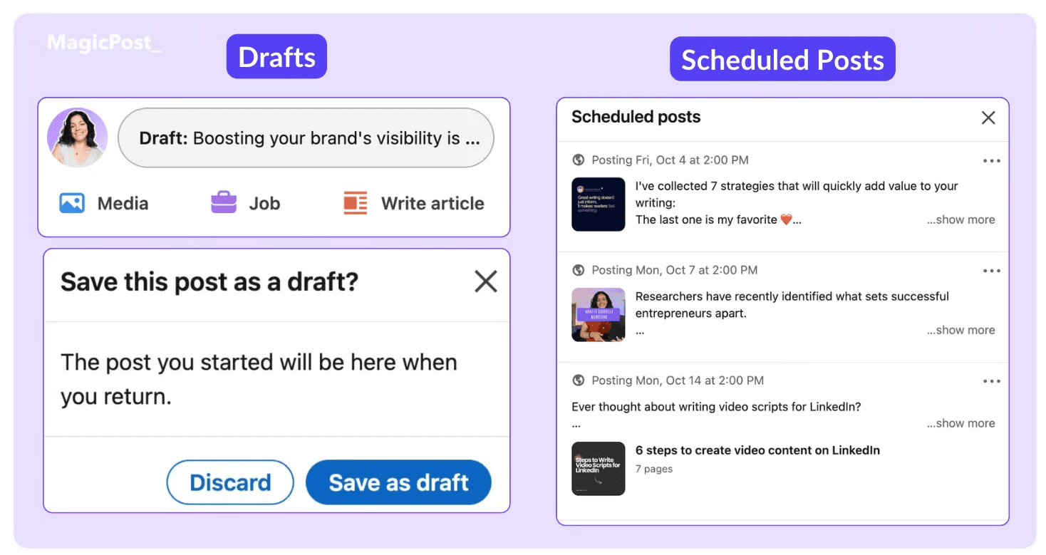 Cómo gestiona LinkedIn los borradores y las publicaciones programadas