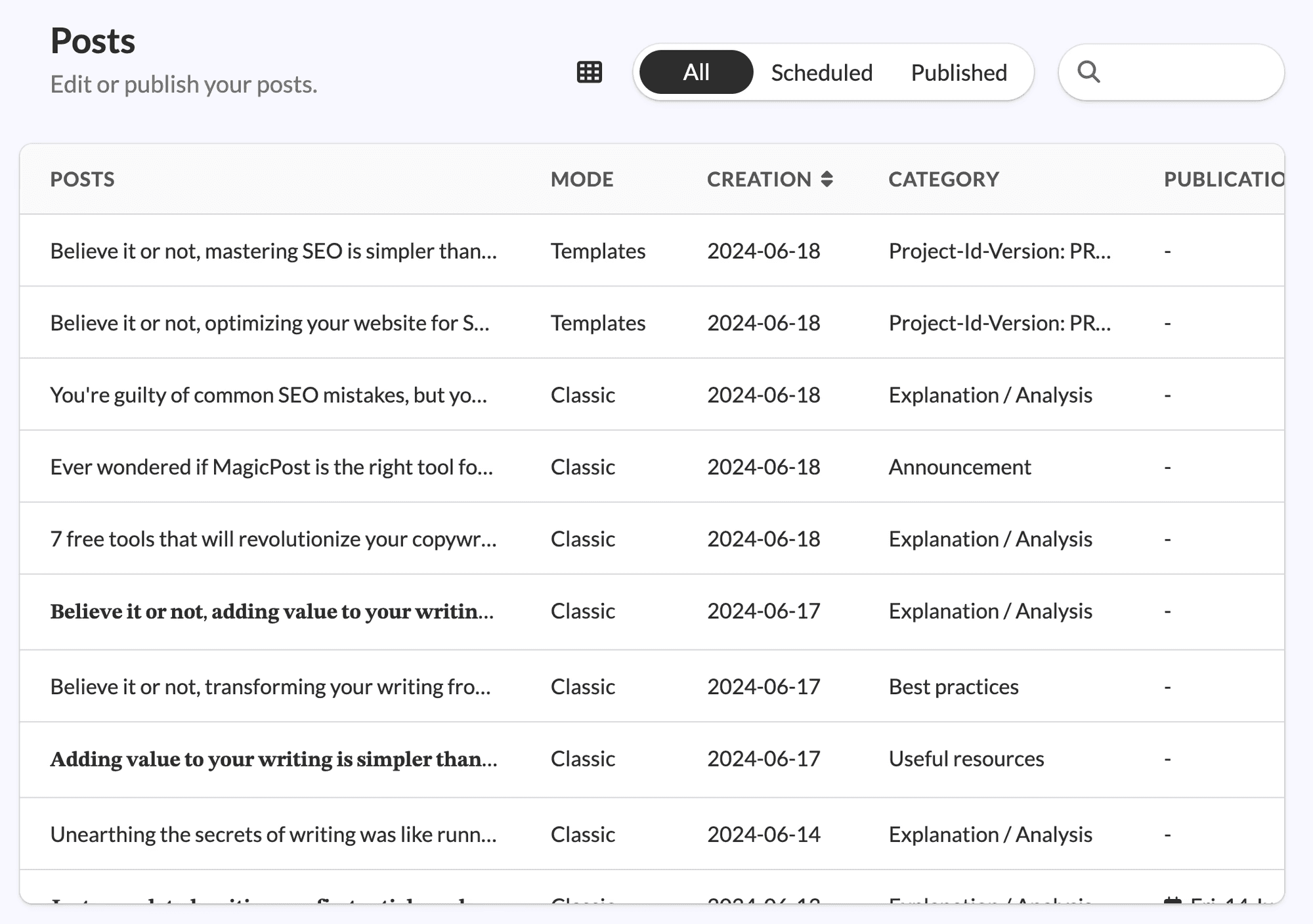 MagicPost te ayuda a mantener organizado todo tu contenido, independientemente de si ya lo has publicado o no.