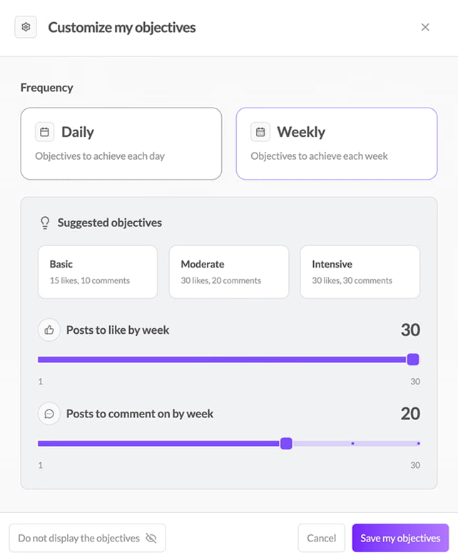 Set your daily or weekly objectives
