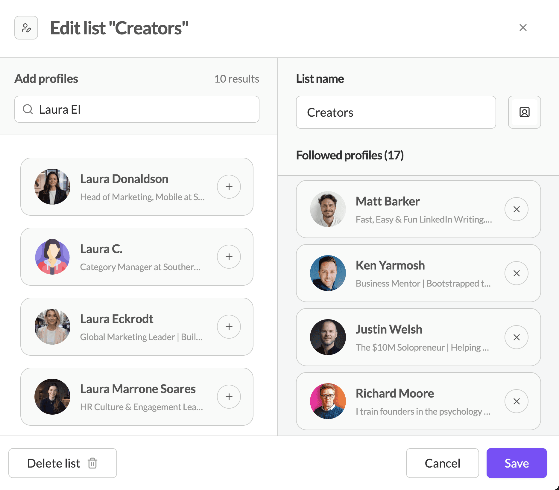 Create your custom lists of profils