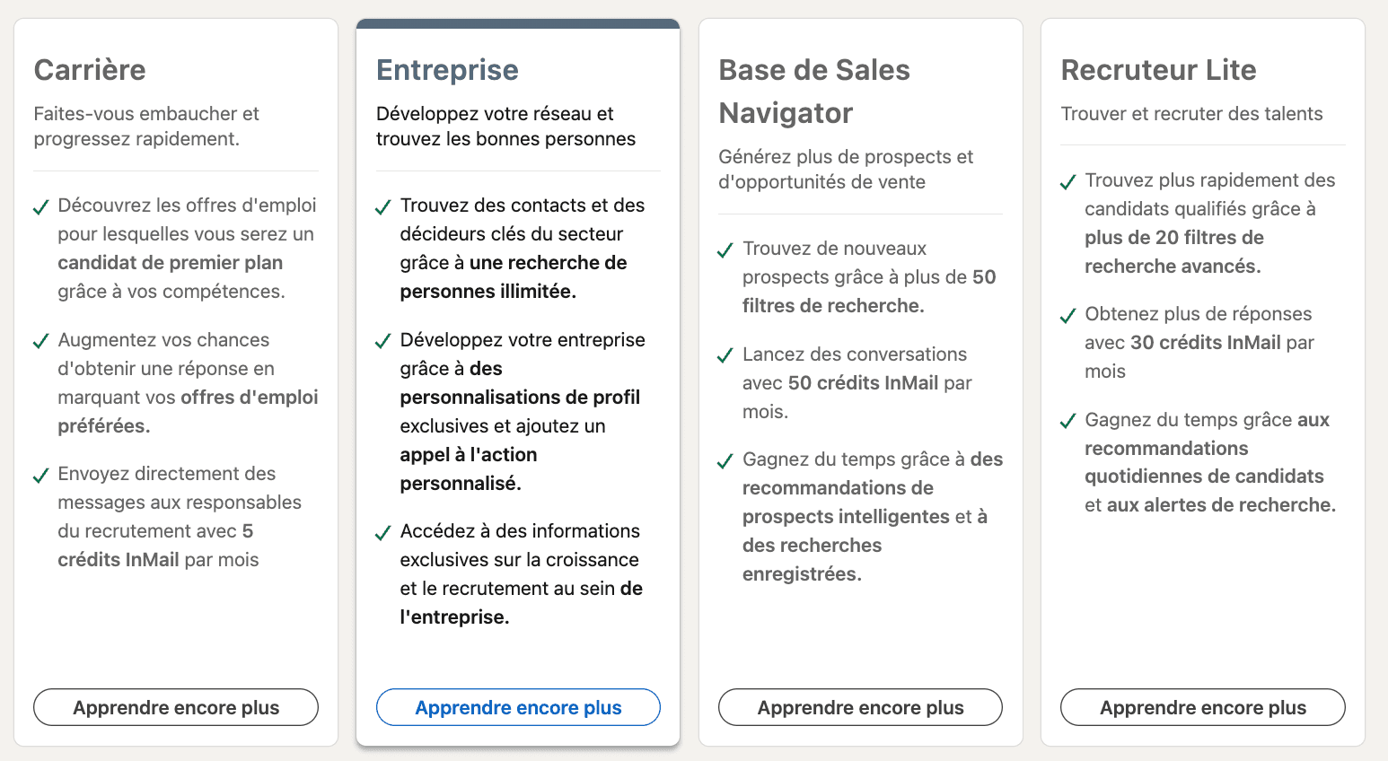 En résumé, il s’agit d’une version enrichie permettant d’utiliser des outils plus avancés pour élargir son réseau ou optimiser ses recherches professionnelles.