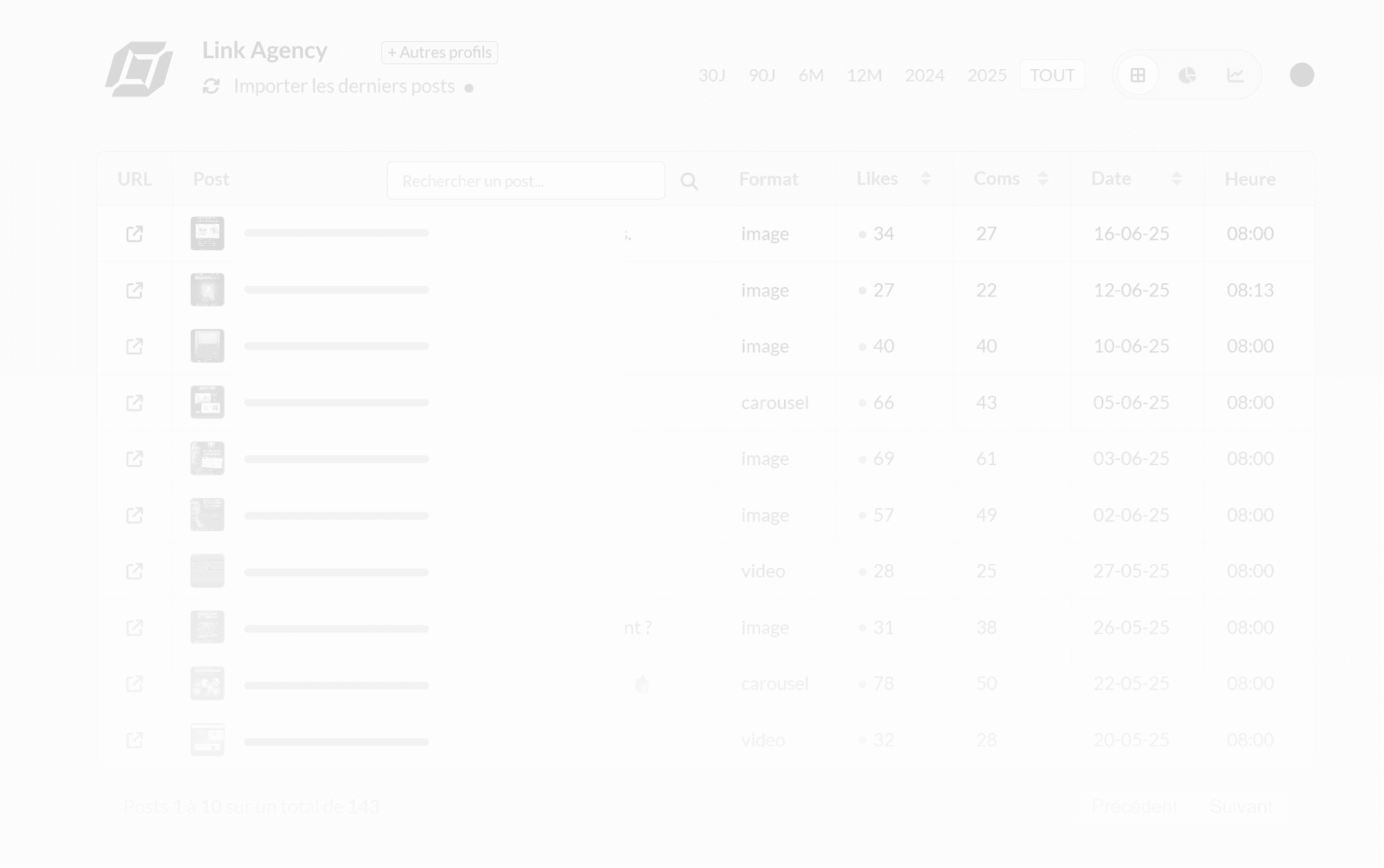 Visualisez qui publie, quand, et comment.