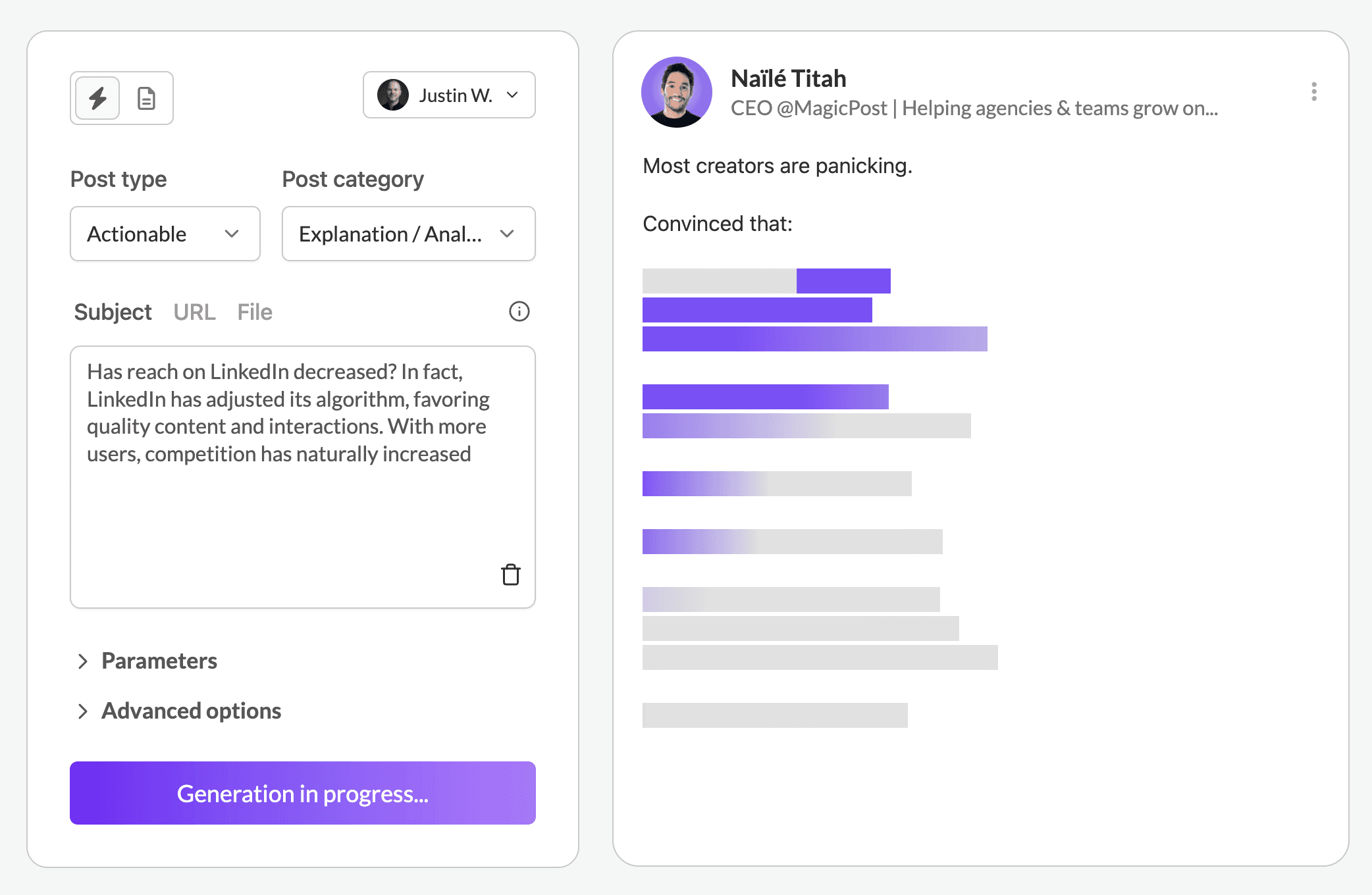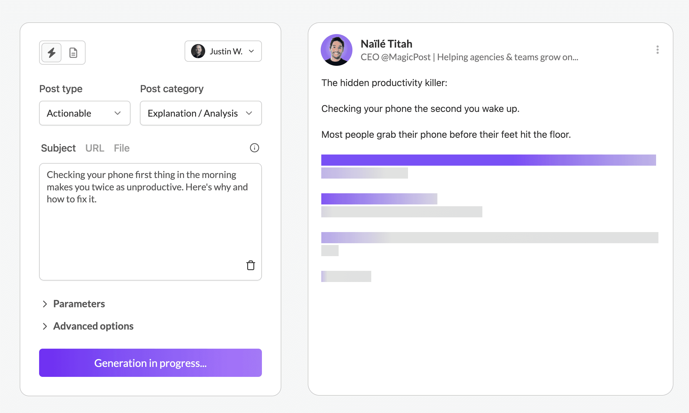 ↳ Laissez MagicPost générer une publication originale