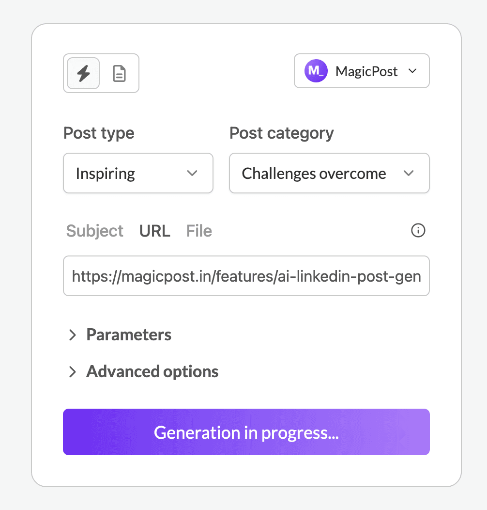 Arrêtez de passer des heures à rédiger la publication parfaite. Avec MagicPost, créez avec votre voix, vos sujets, votre format. Prêt à publier ou à peaufiner en un clic.