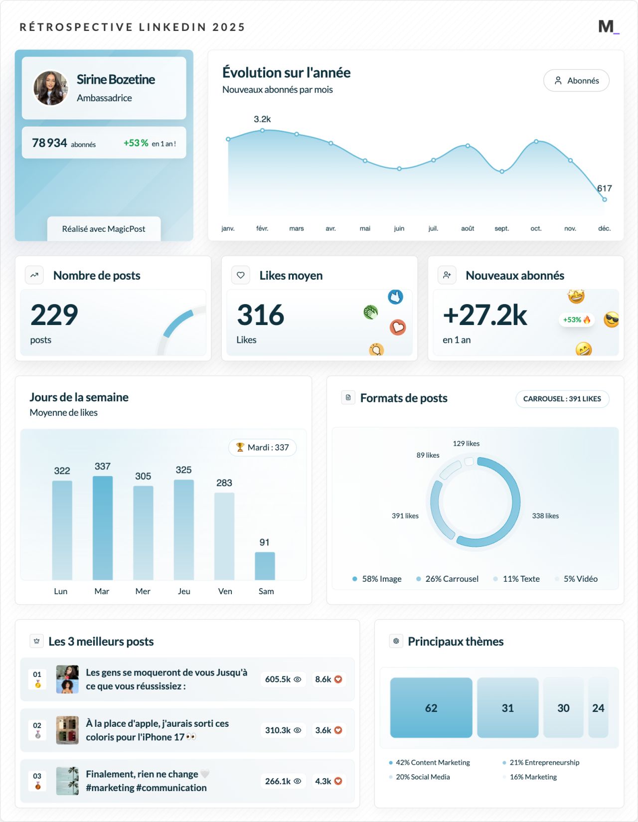 Your 2025 LinkedIn year deserves a proper review. Generate your full report, ready to download and share with just one click!